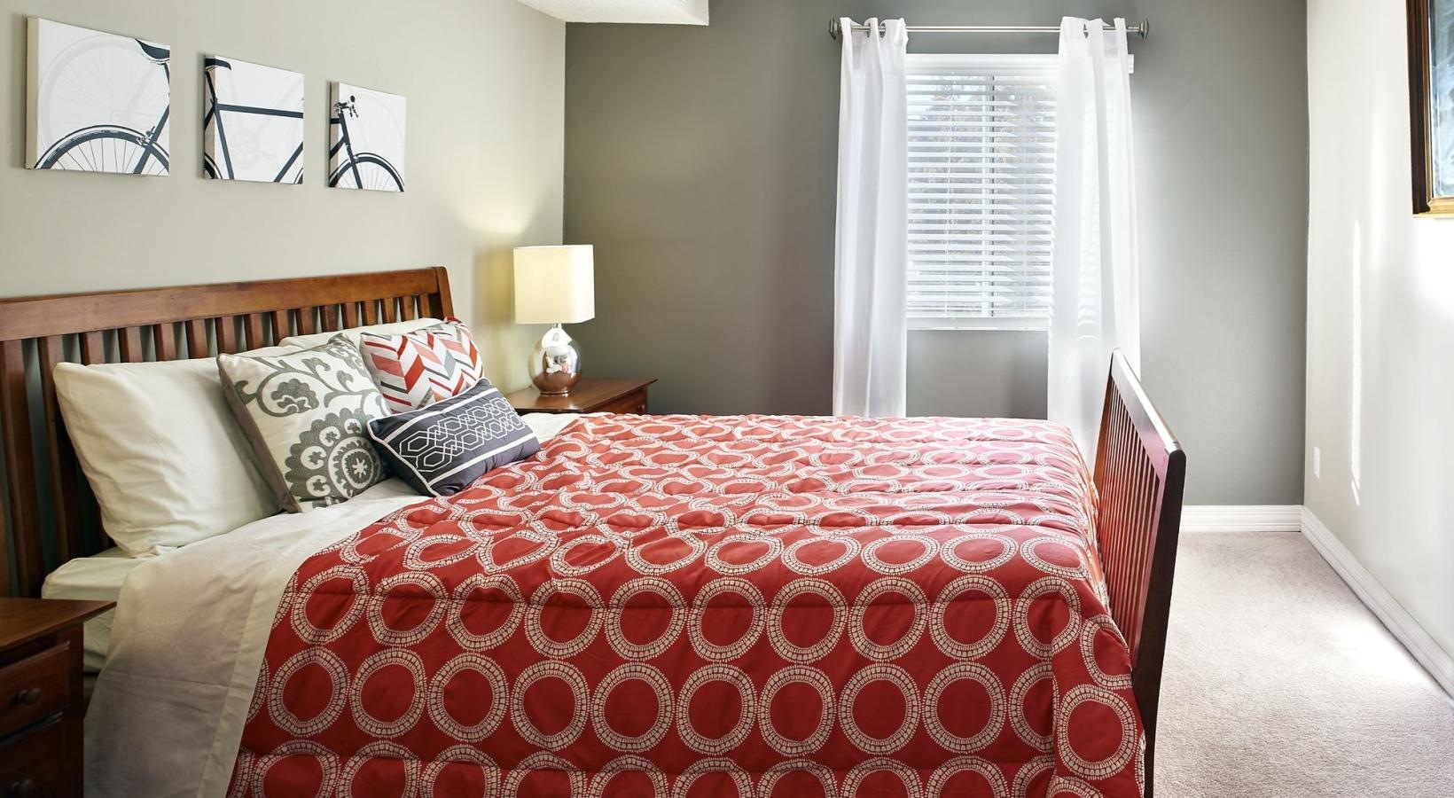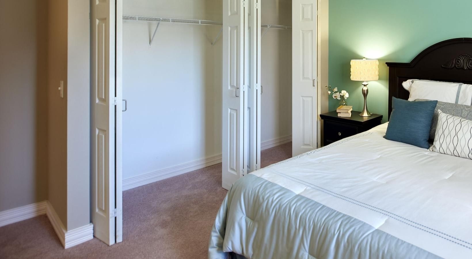 • bedroom with a closet, large, spacious areas, and bright lighting from large patio doors